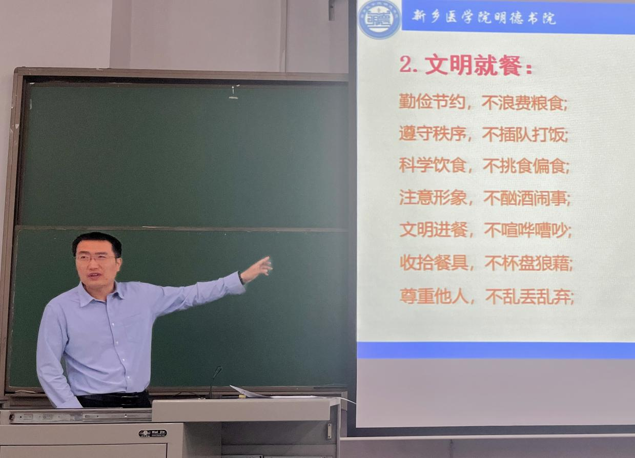 为规范学生礼仪,加强学生爱校荣校教育,营造和谐向上的校园文化氛围,4月20日,我院于博学楼第三大教室教室开展“文明礼仪,爱校荣校”教育大会,2022级全体学生参与本次会议,本次大会由明德书院副院长刘基伟主讲,辅导员王亚薇主持。