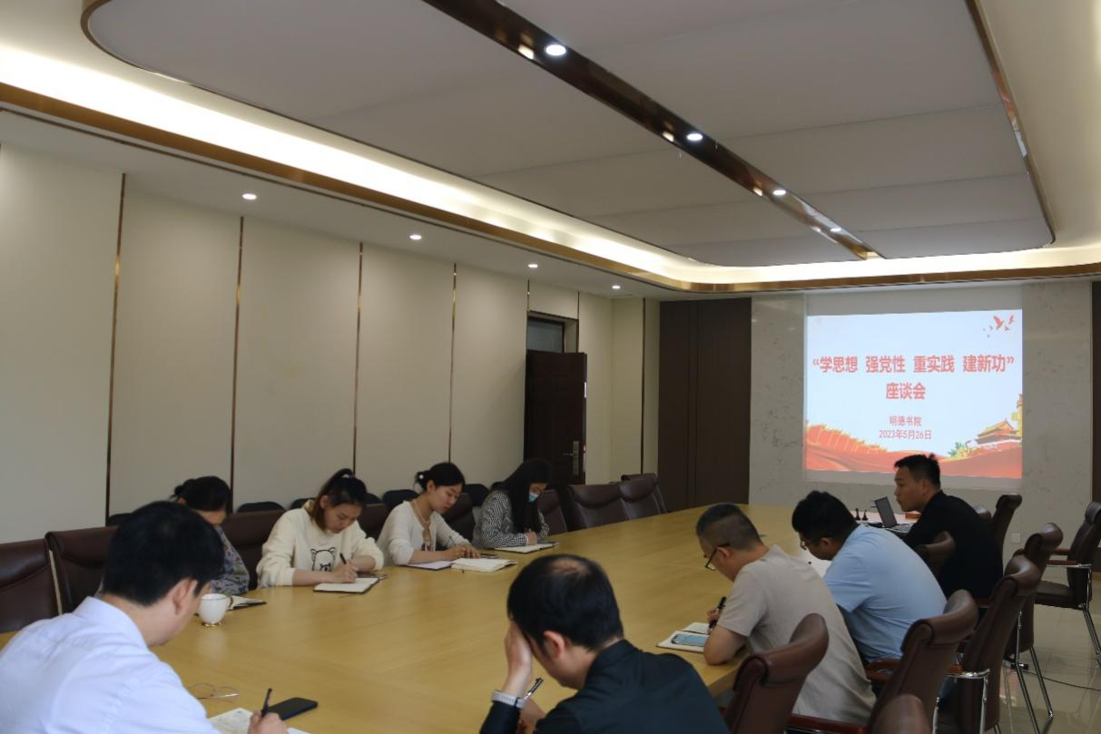 首先,按照会议安排进行“学思想 强党性 重实践 建新功”座谈会,座谈会围绕如何在学生党员中开展主题教育进行讨论。各基层党支部书记就学生党员主题教育学习形式、内容、特色创建进行了深入的研讨并对发现的问题进行分析研判。通过此次座谈会,与会人员表示要坚决按照习近平新时代中国特色社会主义思想主题教育“学思想、强党性、重实践、建新功”的总要求,充分发挥党员先锋模范作用,促进党建与业务,党建与学习的深度融合,不断推动书院高质量发展。