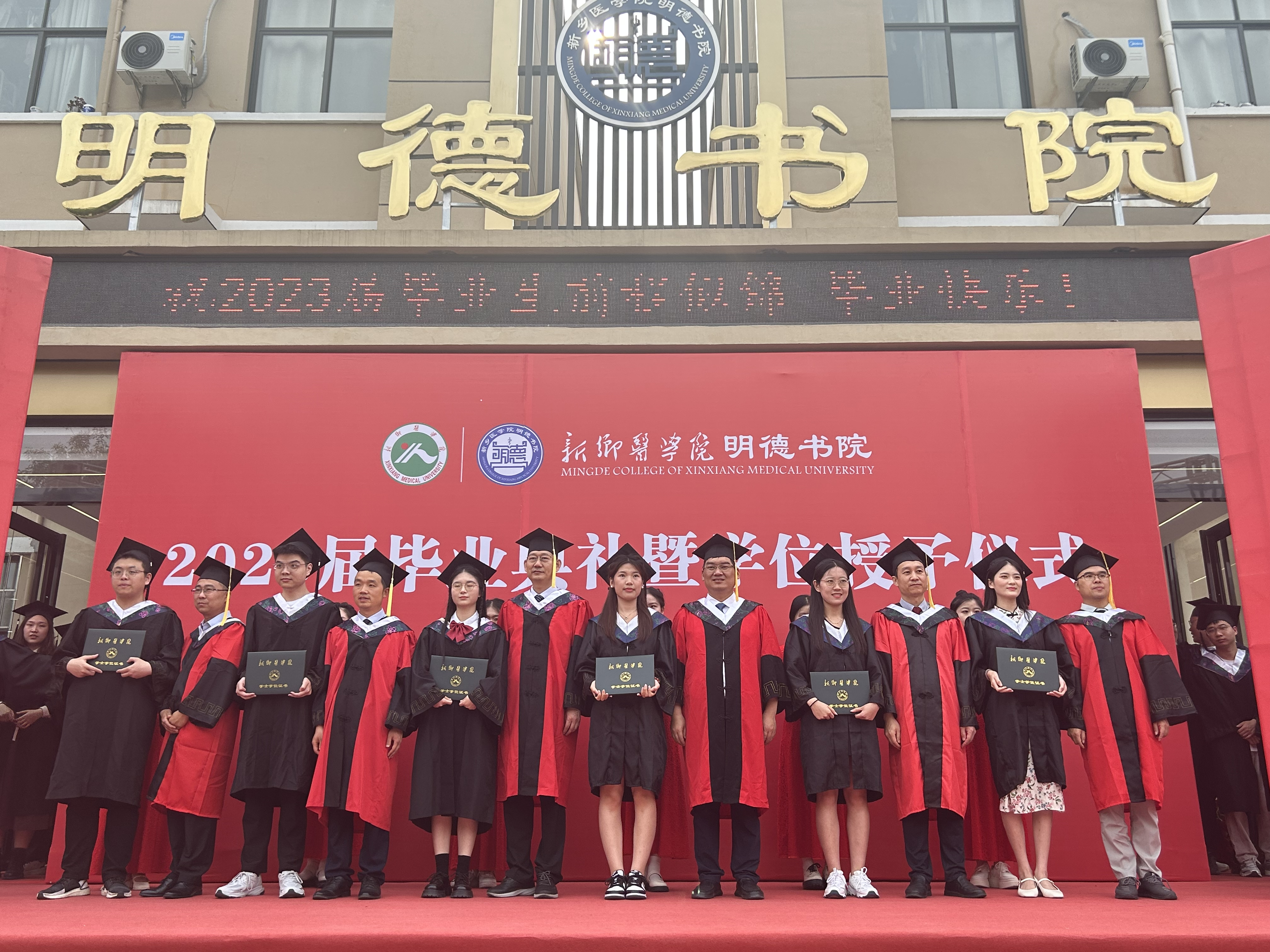 颁发学士学位证书并合影留念