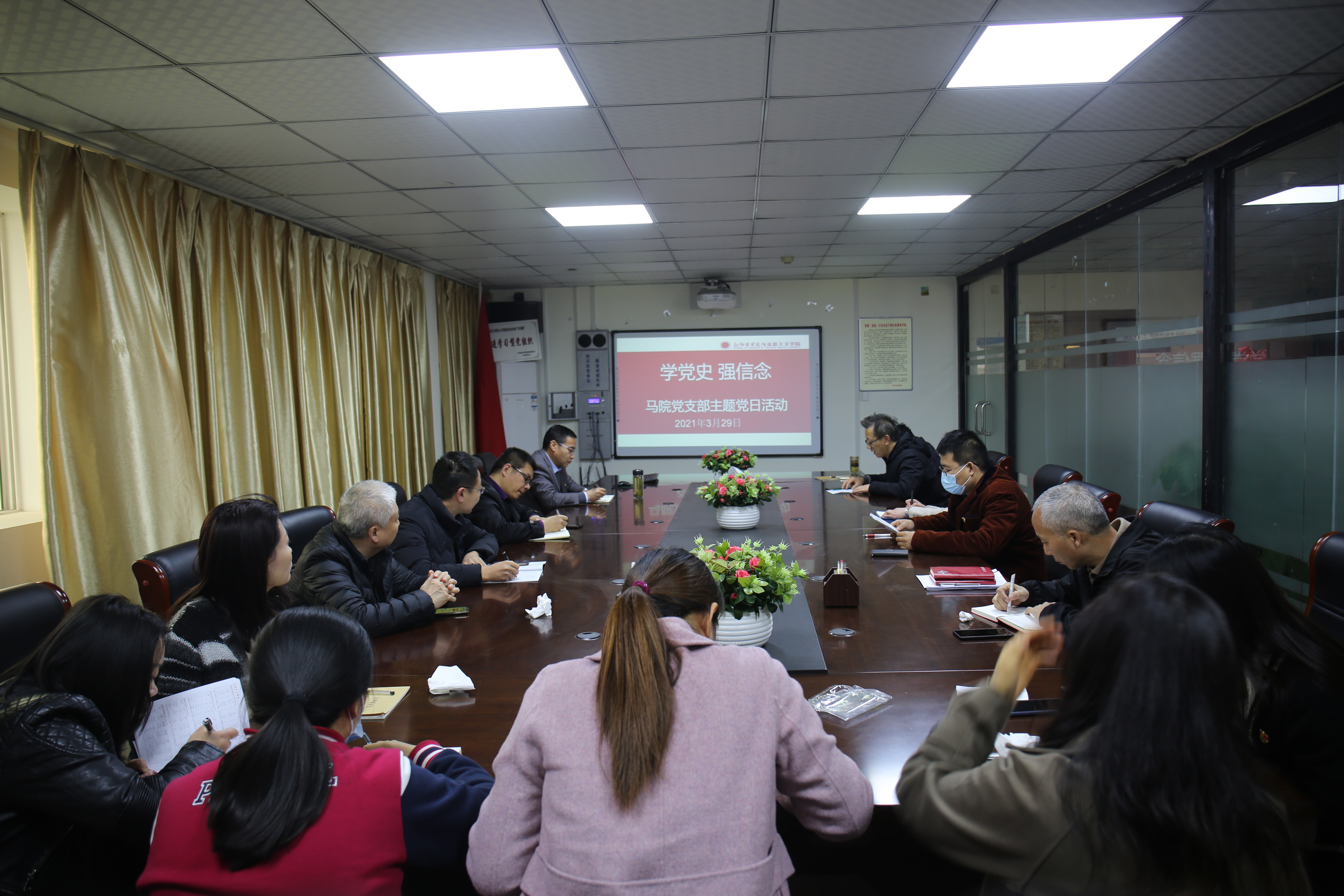 2021年3月29日下午,马院党支部召开“学党史、强信念”主题党日活动,活动由马院党支部书记刘奇主持。