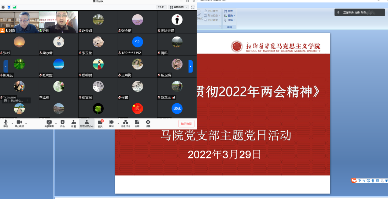 3月29日下午,马院党支部利用腾讯会议(会议号:351279005)召开了“学习宣传贯彻2022年‘两会’精神”为主题的主题党日活动。会议由党支部书记刘奇主持。