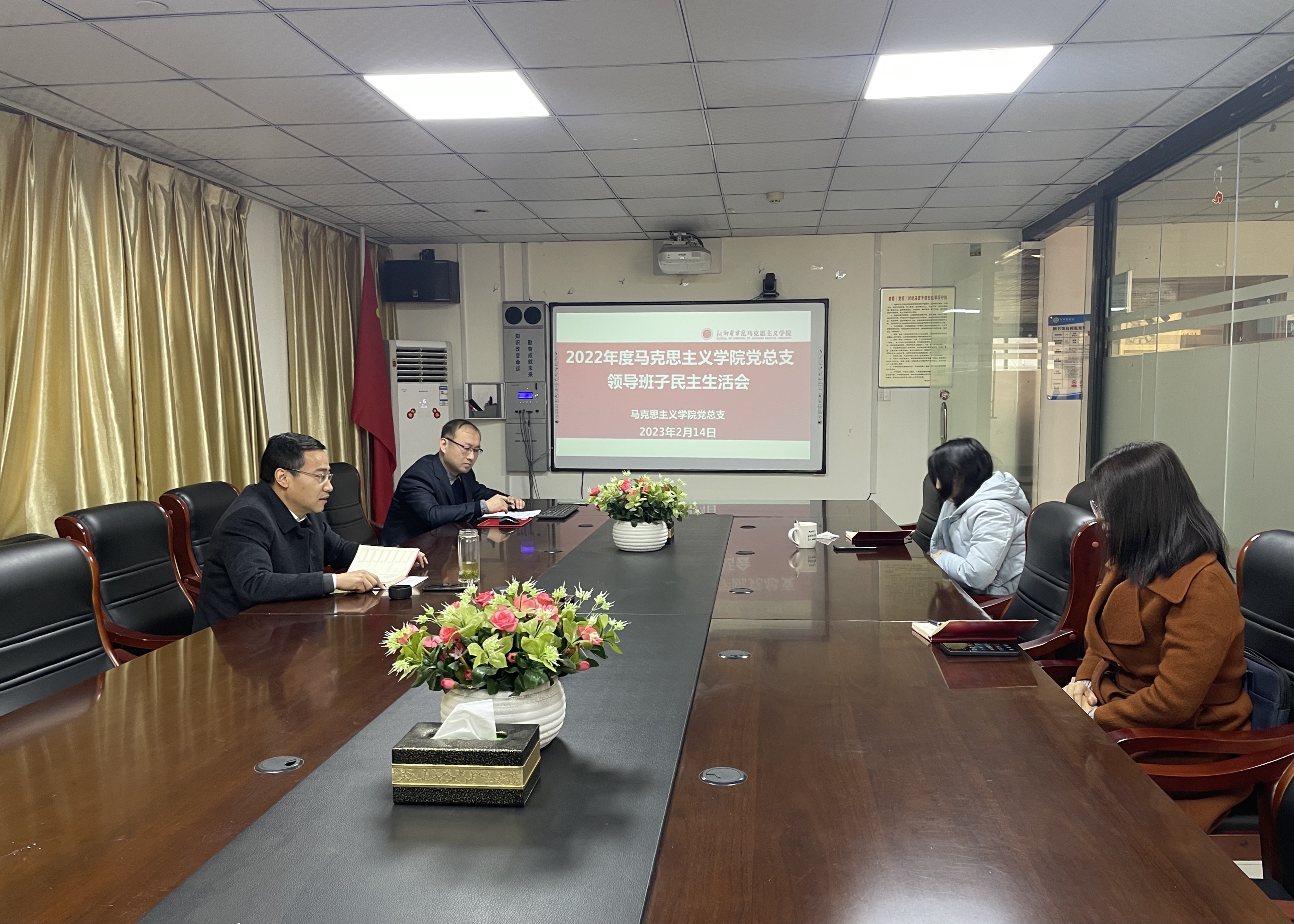 2月14日上午,马克思主义学院党总支在西校区综合楼六楼会议室召开2022年度民主生活会。总支班子成员参加会议。会议由总支副书记史伟主持。