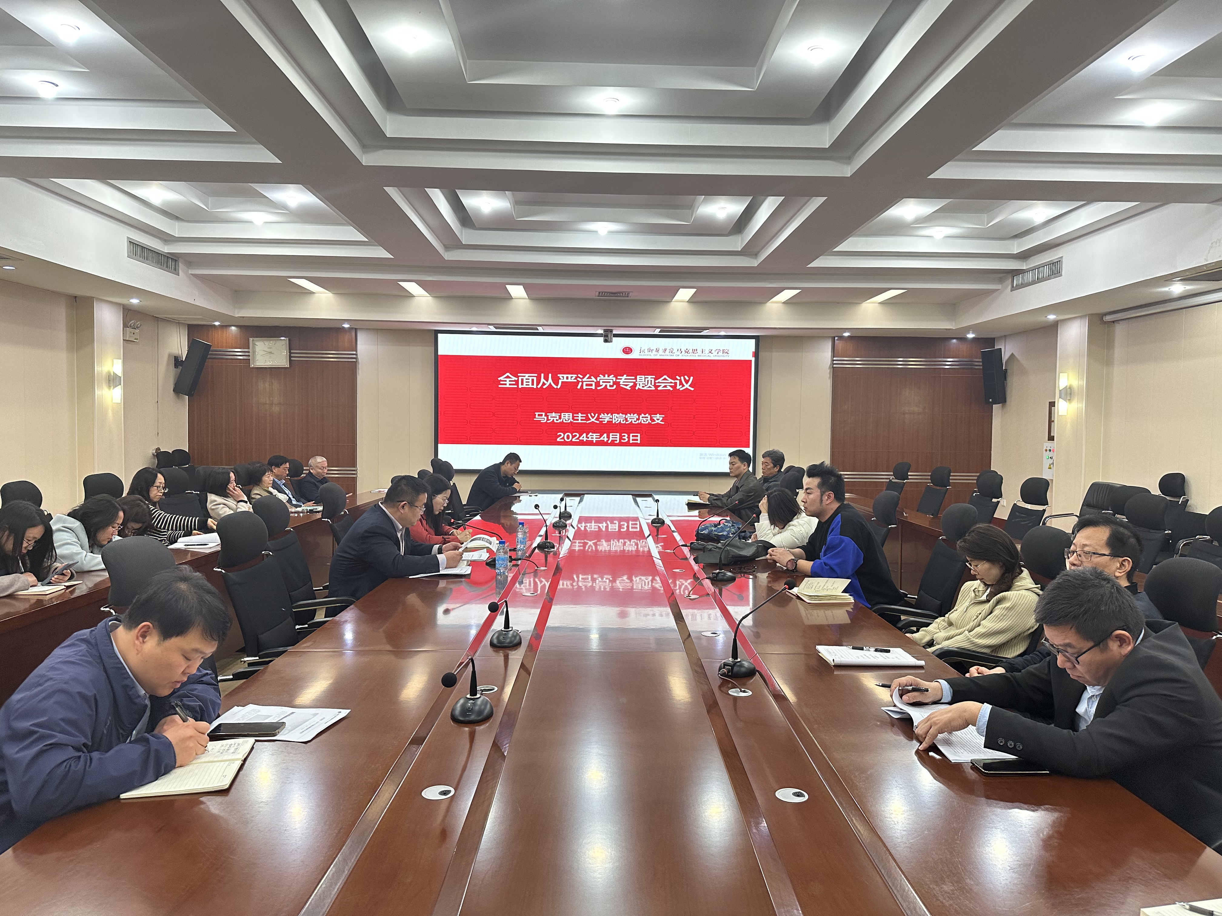 为深入学习贯彻习近平总书记关于党的自我革命重要思想和全面从严治党战略方针,全面落实学校2024年度党建暨全面从严治党工作会议工作部署,4月3日上午,马克思主义学院在勤政楼六楼会议室召开全面从严治党专题会议,院班子成员及全体教职工参加会。会议由仝士栋主持。