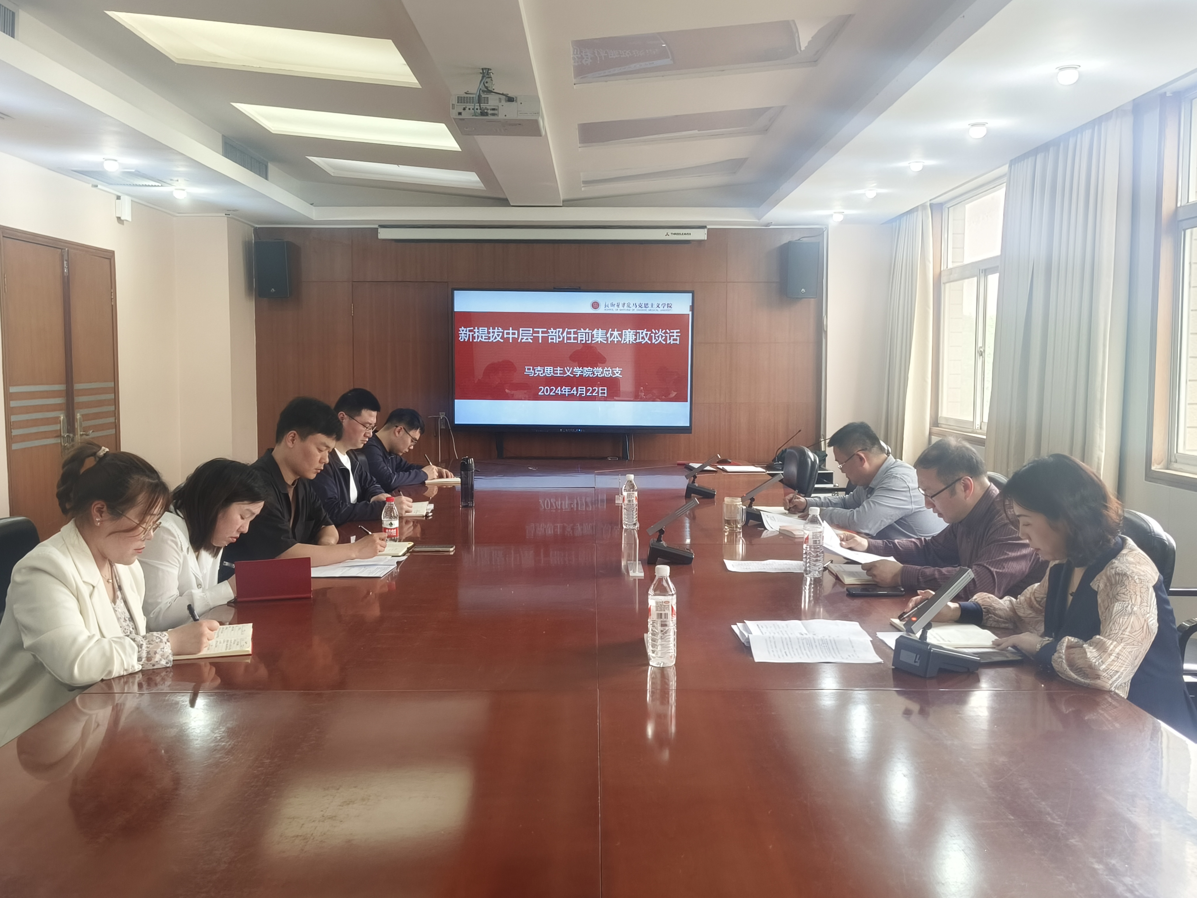 为深入开展党纪学习教育,落实党风廉政建设责任,增强学院新提拔中层干部干部廉洁自律意识和拒腐防变能力。4月22日,我院在勤政楼308会议室进行新提拔干部集体廉政谈话。党总支书记仝士栋、副书记史伟、纪检委员刘红及全体新提拔中层干部参加会议。会议由仝士栋主持。