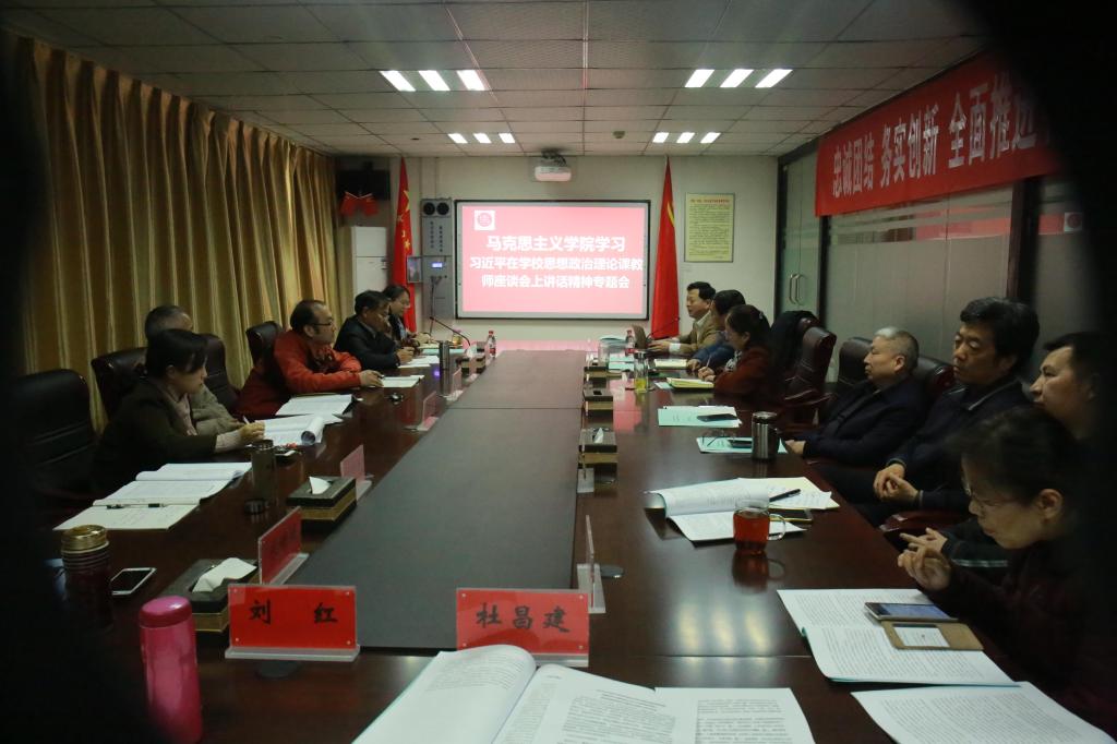 专题学习会上,马院负责人表示,我们必将“守土负责、守土尽责”,学懂弄通做实习近平总书记重要讲话精神,把讲话精神和马院建设相结合,扎实推进,全面发力,不断夯实学校办好思政课的硬实力、教师讲好思政课的硬功夫、学生学好思政课的真本领,为使马克思主义学院早日进入省级重点马克思主义学院建设行列而努力奋斗。