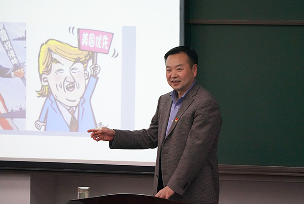 (文/崔静 图/杨涛)11月30日下午,校长任文杰走上第三教学楼3204教室的讲台,为本科生讲授形势与政策课。授课主题是“中美贸易摩擦的实质与启示”。教室里座无虚席,近500名大三学生认真聆听了讲课。