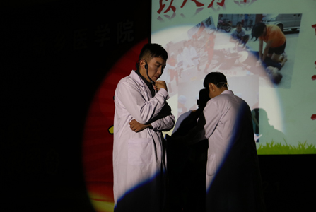 短暂的休息后,比赛在“健康所系,性命相托……”的庄严宣誓中重新开场。舞台剧《人间世—生命至上》,走进急诊室,以感人的情景表演,展现出医生秉持生命至上的崇高精神,突出正确价值观的重要性,并呼吁同学们要坚守职业素养,做一名合格的医务工作者。微电影《和马克思一起看电视》,别出心裁,构思新颖,通过对生活中不同类型的电视剧剧情进行哲学分析,深入浅出地讲述了马克思主义原理。微电影《先生精神永不熄灭》通过展现李大钊对马克思主义的坚定信念,激励同学们在未来的日子里要坚守初心,不畏艰难。