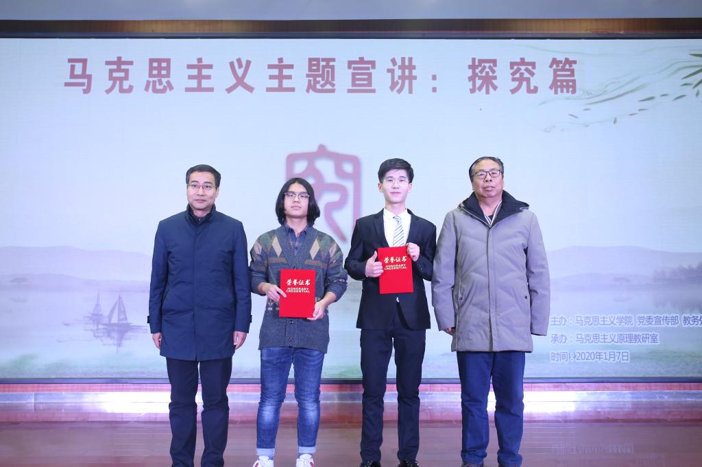 1月7日晚,由我校党委宣传部、教务处、马克思主义学院主办,马克思主义原理教研室承办的第六届“思政杯”主题实践教学展演——“马克思主义主题宣讲:探究篇”在学校第一报告厅成功举办。校党委副书记陈清江教授、校党委委员、副校长雒保军教授、校党委委员、组织部长魏文君教授以及校党委宣传部、校团委、教务处、学生处、马克思主义学院等单位负责人出席活动,河南师范大学、河南科技学院、河南工学院等学校的马院院长,以及我校有关单位和部门的负责同志担任评委,马克思主义学院全体老师和近300名学生共同观看了展演。