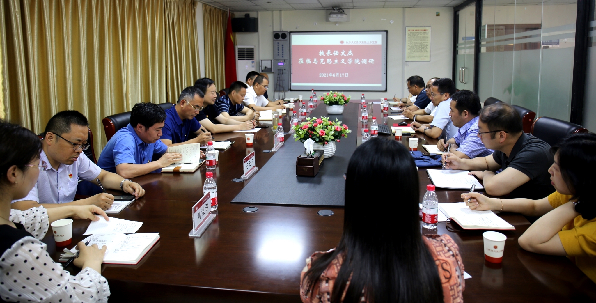6月17日上午,校长任文杰、校党委副书记陈清江到我院现场调研,党委组织部、党委宣传部、第三巡查组、校长办公室、教务处、科技处等部门负责人陪同调研。我院党政班子全体成员和教师代表参加了座谈。
