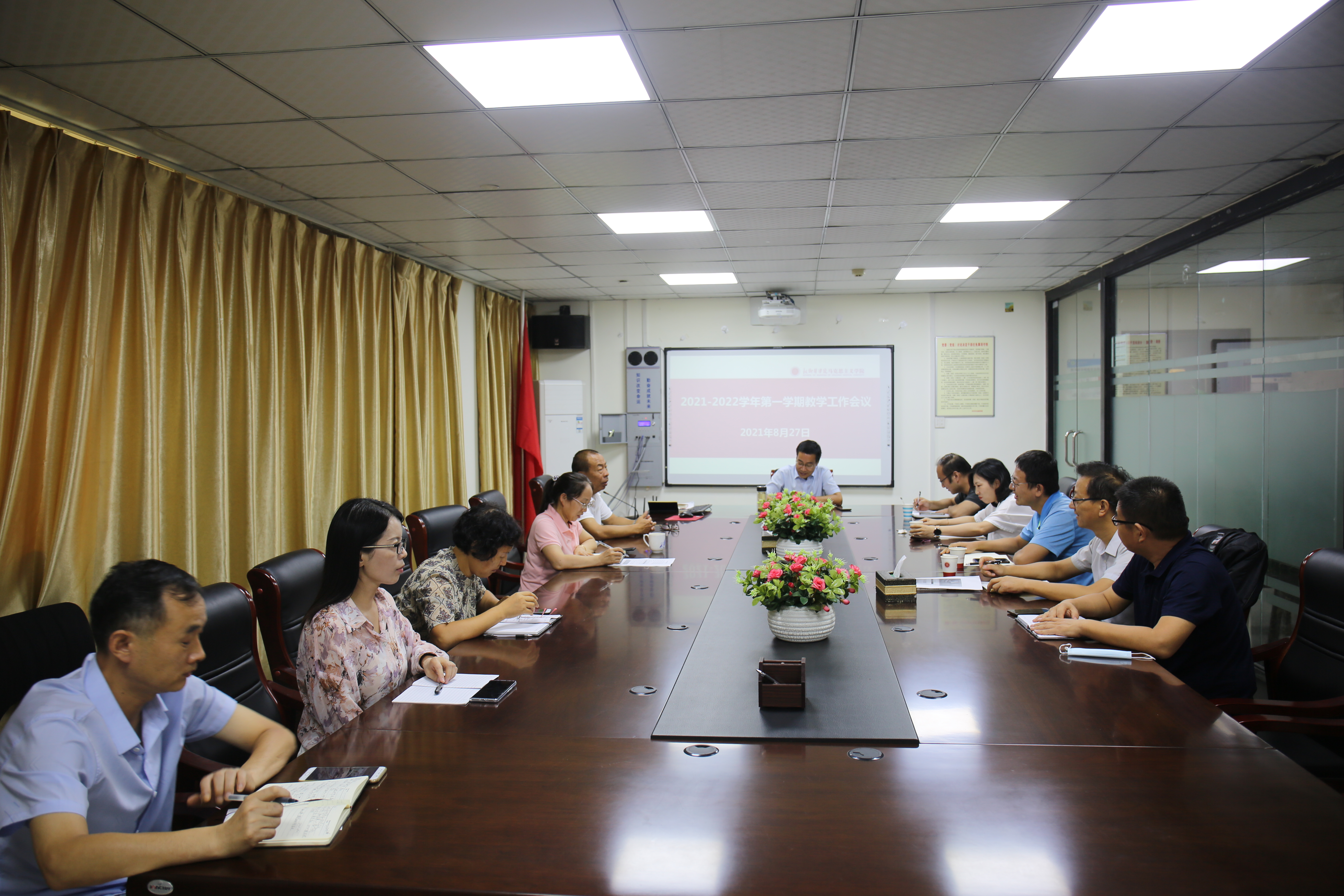 8月27日上午,在西校区综合楼六楼会议室,我院召开了2021 -2022学年第一学期工作会议,学院党总支书记杨冠英、院长戎华刚、党总支副书记史伟、副院长冯秋季及各科室负责人参加。