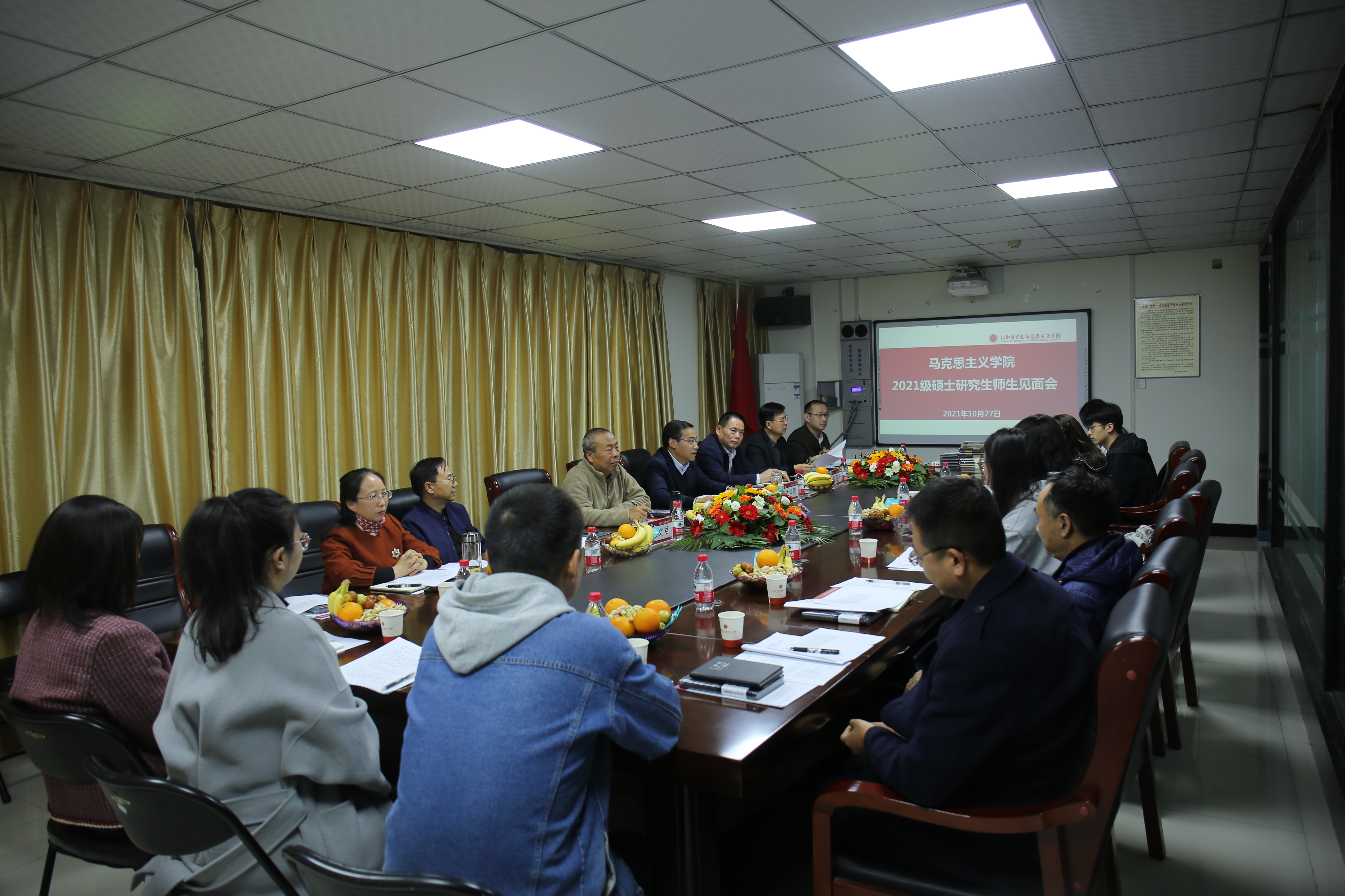 10月27日下午,我院2021级硕士研究生师生见面会在西校区六楼马克思主义学院会议室召开。党委委员、组织部部长魏文君教授、财务处处长郗万富教授、医学检验学院党委书记白剑波教授、马克思主义学院与人文学院总支书记杨冠英、马克思主义学院院长戎华刚教授、马克思主义学院副院长冯秋季教授、马克思主义学院与人文学院党总支副书记史伟副教授、马克思主义学院张功震教授、罗会宇副教授、康瑞林博士以及2021级全体硕士研究生出席。本次活动由戎华刚教授主持,他首先表达了老师们对新生到来的热烈欢迎。