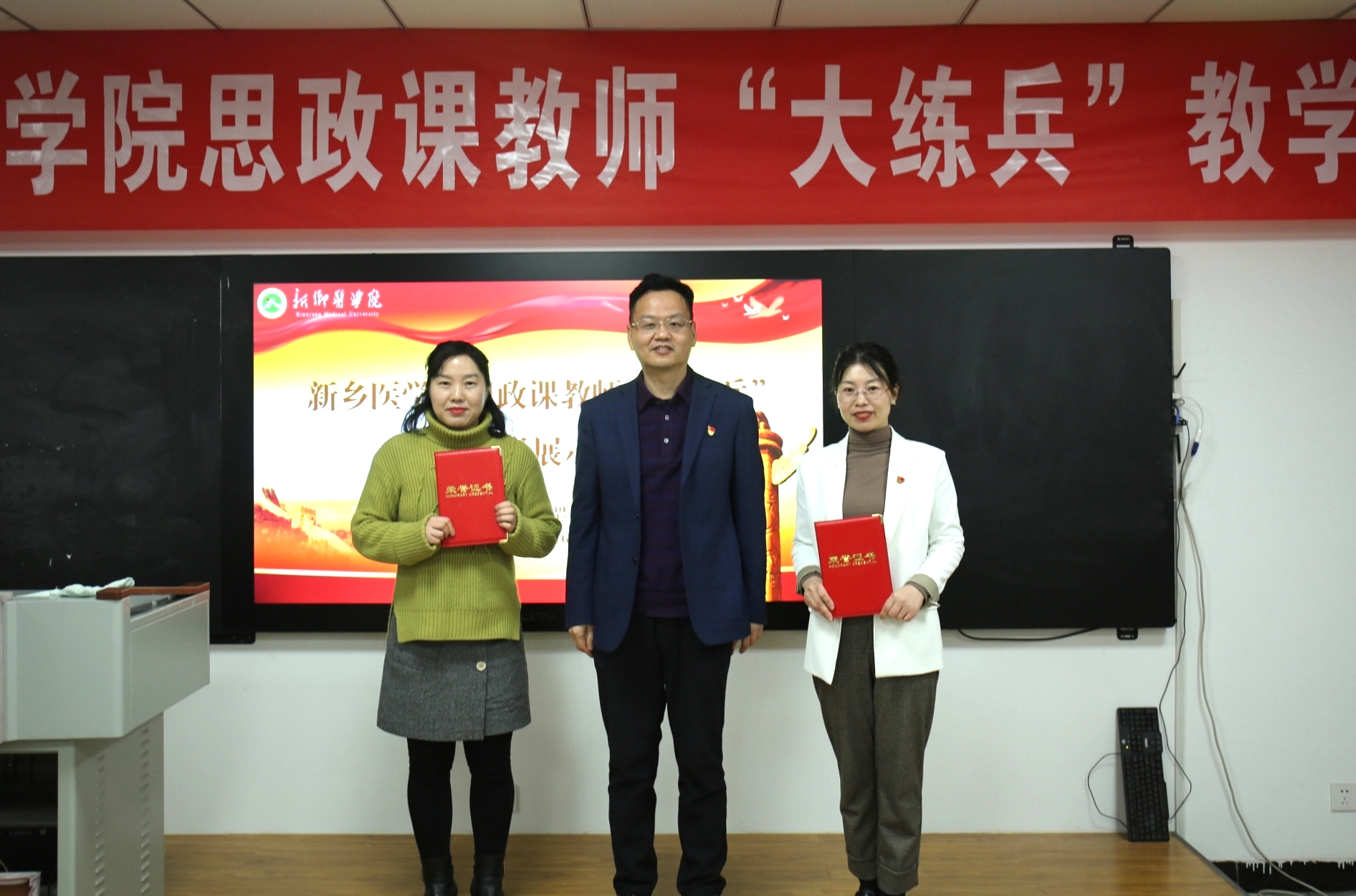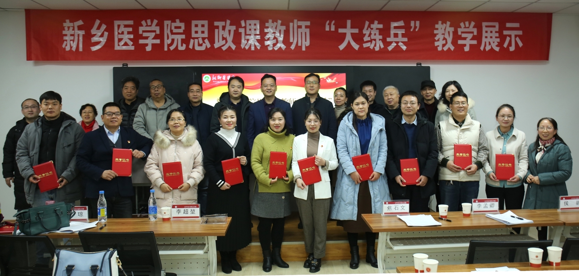 为深入贯彻落实习近平总书记在学校思想政治理论课教师座谈会讲话精神、特别是“大思政课”重要指示精神,贯彻落实中共河南省委高校工委 河南省教育厅《关于开展全省学校思想政治理论课教学技能“大练兵、大比武、大展示”活动的实施意见》的文件要求,充分发挥思政课作为落实立德树人根本任务关键课程的作用,不断提升思政课教育教学质量和水平,我校于2022年1月6日在西校区第一多媒体教室成功举办了思政课教师“大练兵”教学展示活动,这标志着我校思政课教师全员教学技能提升活动新年开训。活动由马克思主义学院承办,校党委副书记陈清江教授出席活动,学校教务处、科技处、人事处、研究生处等相关职能部处负责人应邀出席“大练兵”教学展示活动并担任评委,马克思主义学院全体班子成员、全体思政课教师、全体研究生共60余人参加活动。