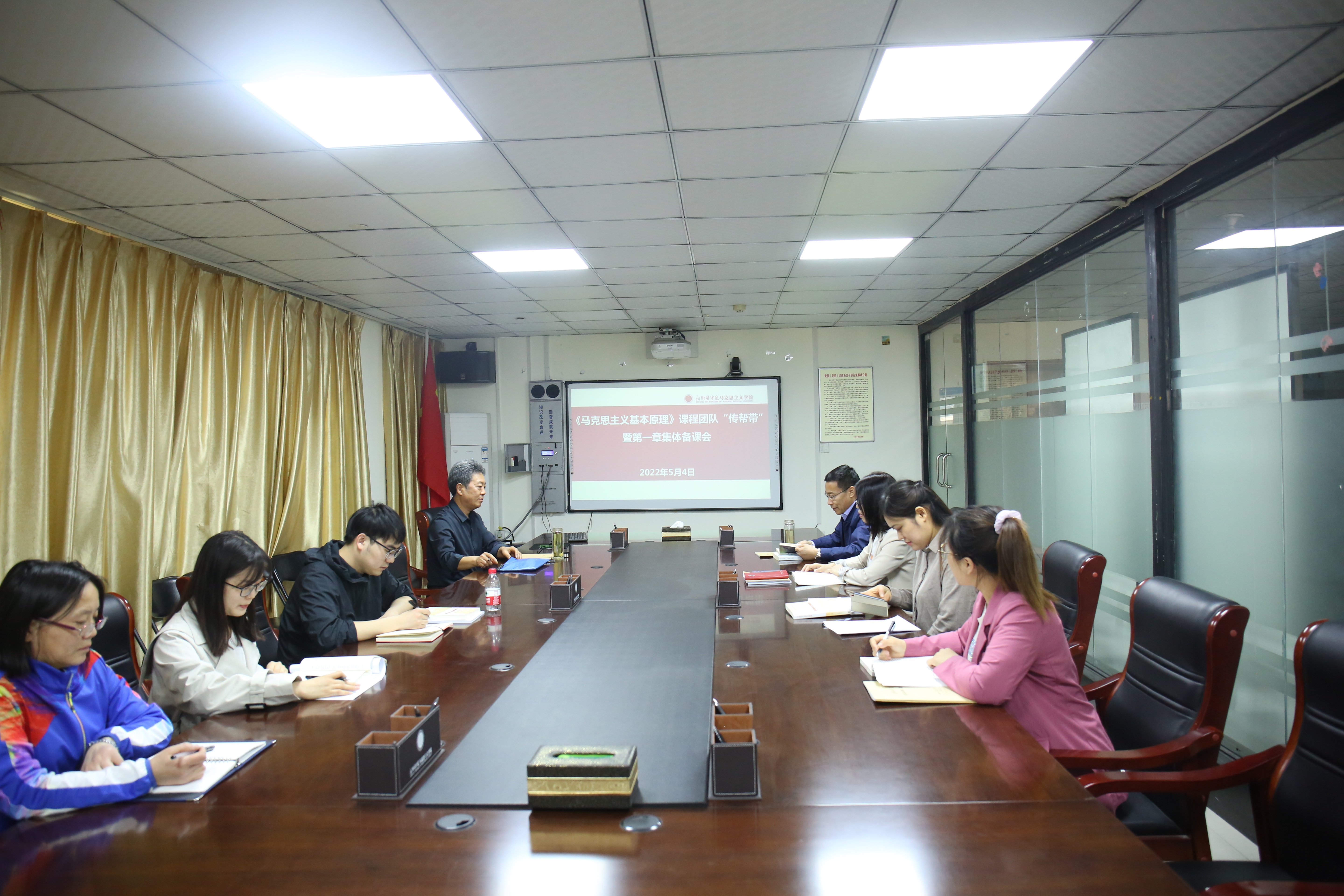 为进一步重塑思政课课堂教学生态,持续提升思政课教师教学能力,夯实思政课教师“讲道理”的真本领, 5月4日上午,我院“课堂教学质量提升年专项行动”系列活动之一,《马克思主义基本原理》课程团队在马院会议室,开展了“传帮带”暨第一章集体备课会。本次活动由思政课名师工作室培育项目负责人朱培丽博士主持,赵龙玉老师主讲。院长戎华刚教授参与并指导,所有团队成员共同研讨。