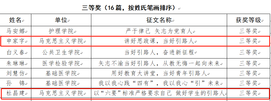 按照河南省教育厅《关于在全省教育系统开展“当好引路人,一起向未来”师德主题教育活动的通知》(教师【2022】65号)要求,我校开展了 2022年师德教育主题征文和师德师风优秀案例评选活动。经学院推荐、材料审核、专家评审等程序,我院教师申家字副教授、杜昌建副教授荣获师德教育主题征文三等奖。