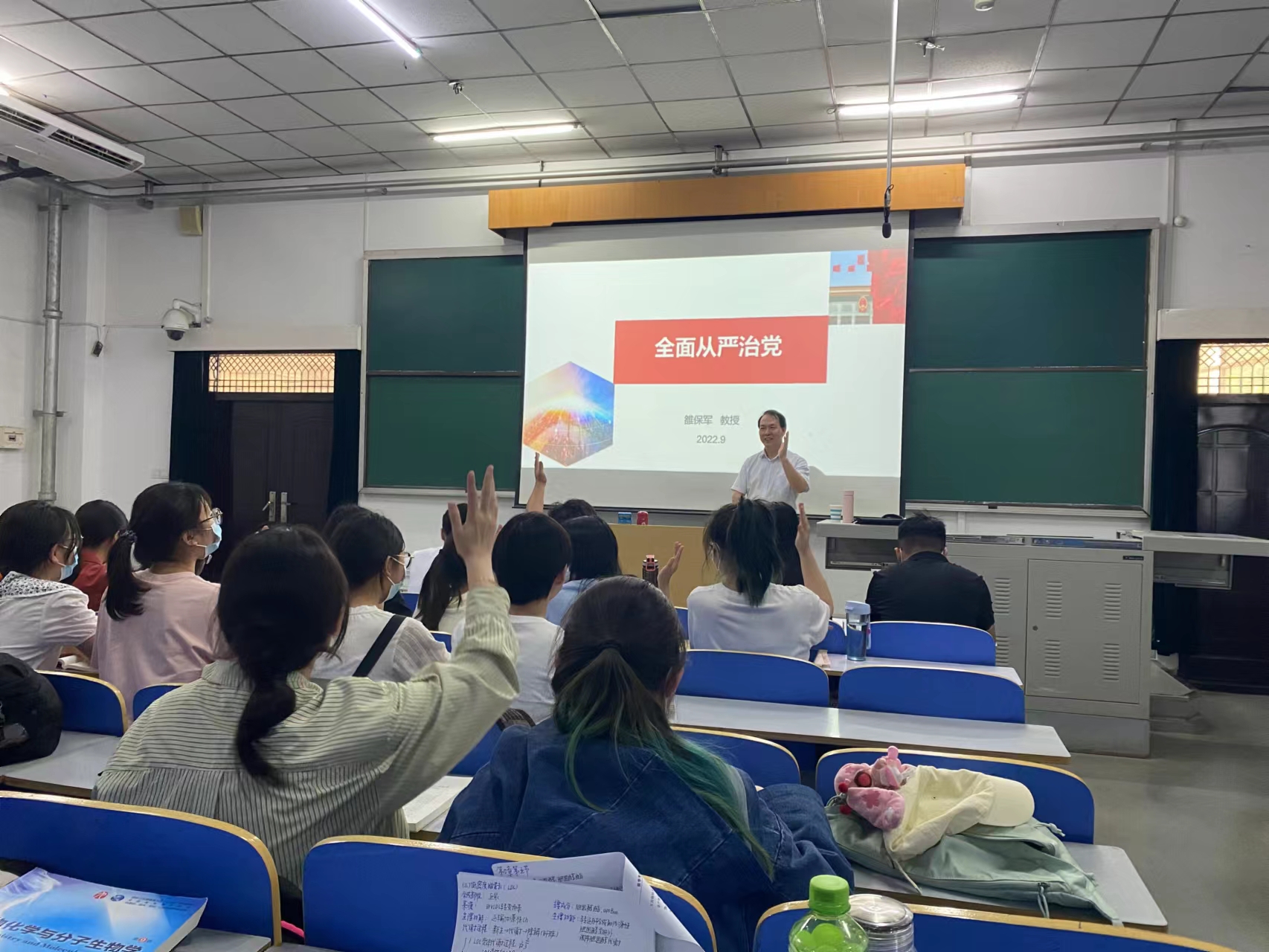 9月29日下午,新学年、新学期的线下课第一周,在本科三年级预防与康复班的思政课堂上,学校党委委员、副校长雒保军教授以《全面从严治党》为题,为青年学生讲授了一堂生动而有趣的思政课。