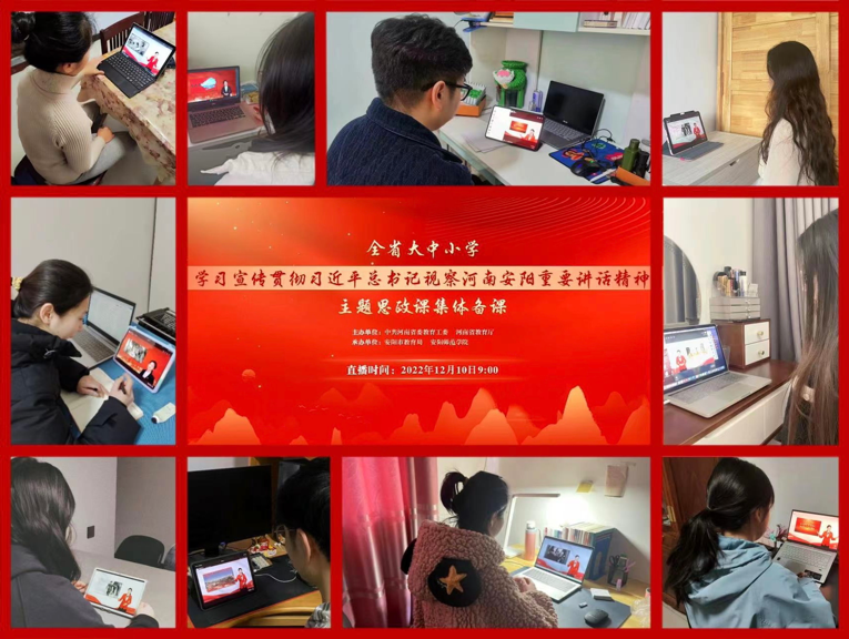 12月10日上午,为学习宣传贯彻党的二十大精神和习近平总书记视察河南安阳重要讲话精神,我院积极组织学生观看由中共河南省委教育工委、河南省教育厅主办,安阳市教育局、安阳师范学院承办的“学习宣传贯彻习近平总书记视察河南安阳重要讲话精神主题思政课集体备课活动”。