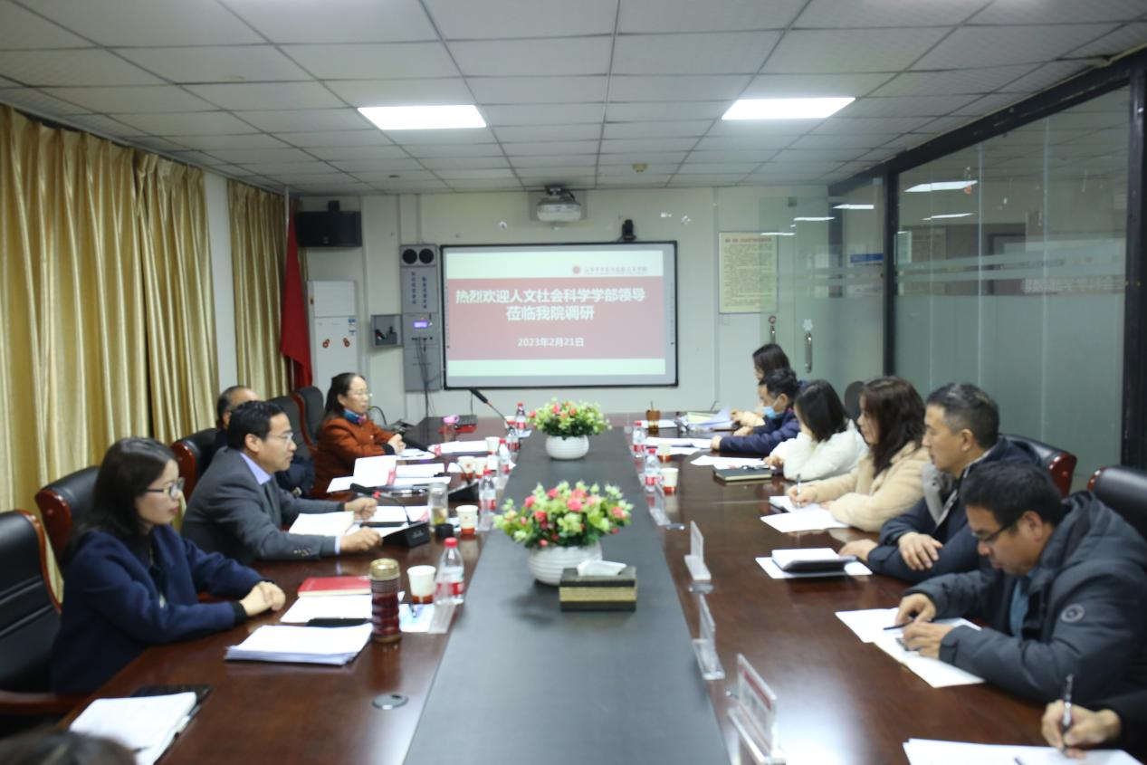 2月21日下午,学校人文社会科学学部主任刘雪立、副主任冯秋季等带队到我院现场调研,在西校区综合楼六楼会议室开展了相关座谈交流活动,我院院长戎华刚教授、副院长朱培丽副教授、科研办主任罗会宇副教授、张功震教授、刘珍玉副教授及各位新进博士参加了座谈。