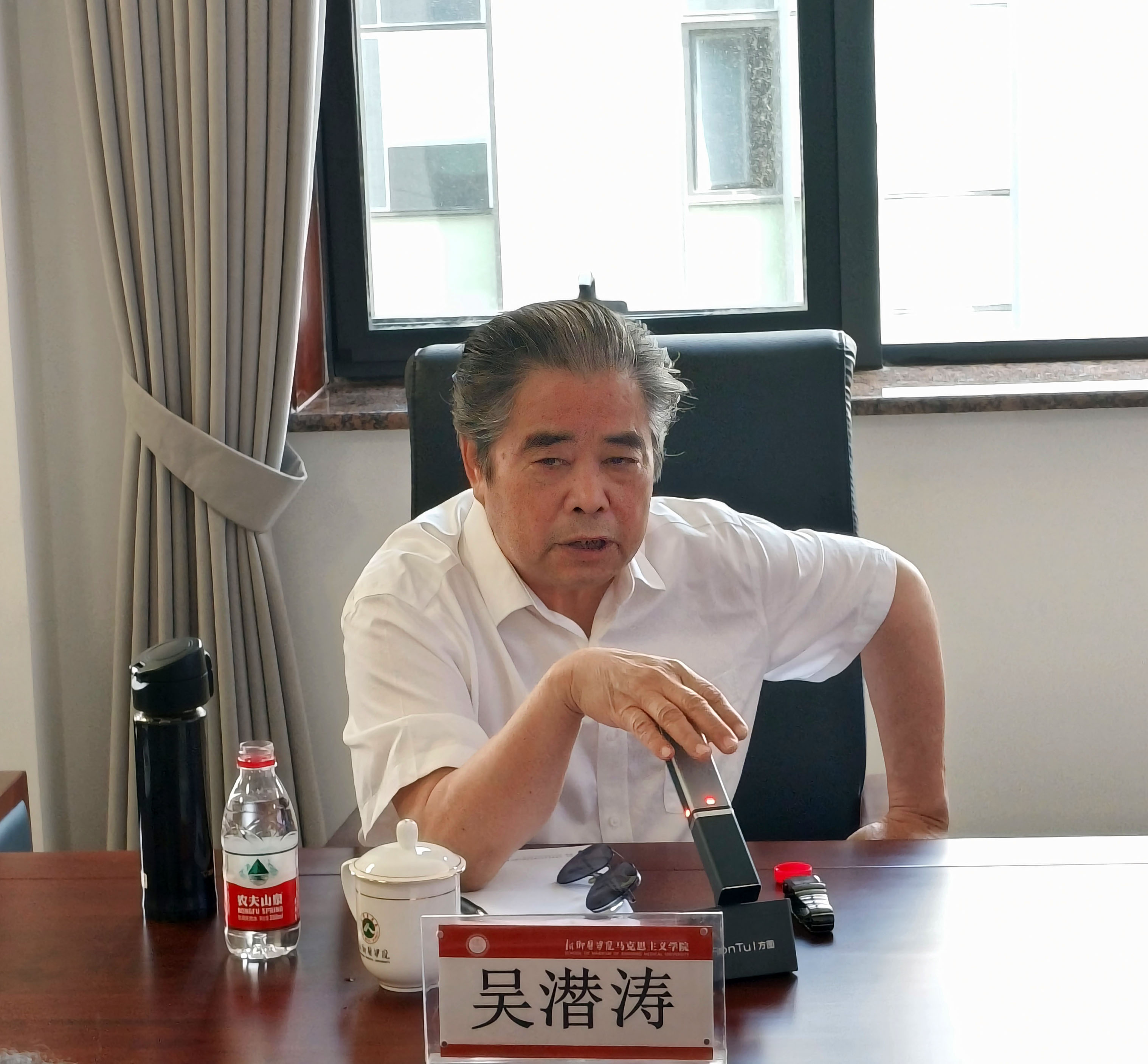会上,朱培丽就学院机构设置与人才队伍、课程建设、学科建设基本情况等方面进行了汇报,并提出了学院发展和学科建设面临的实际问题。吴潜涛教授作出回应和解答,他指出,新时代新征程,党和国家实施教育强国、科技强国、人才强国战略,对马克思主义理论学科及马克思主义学院教师队伍建设提出了新任务、新要求;要规范马克思主义理论学科研究范式,提升马克思主义理论学科教师的核心素养,锻造马克思主义理论学科队伍的科研能力,打造有组织的科研团队,基于地方特色完善科研基地和平台建设。