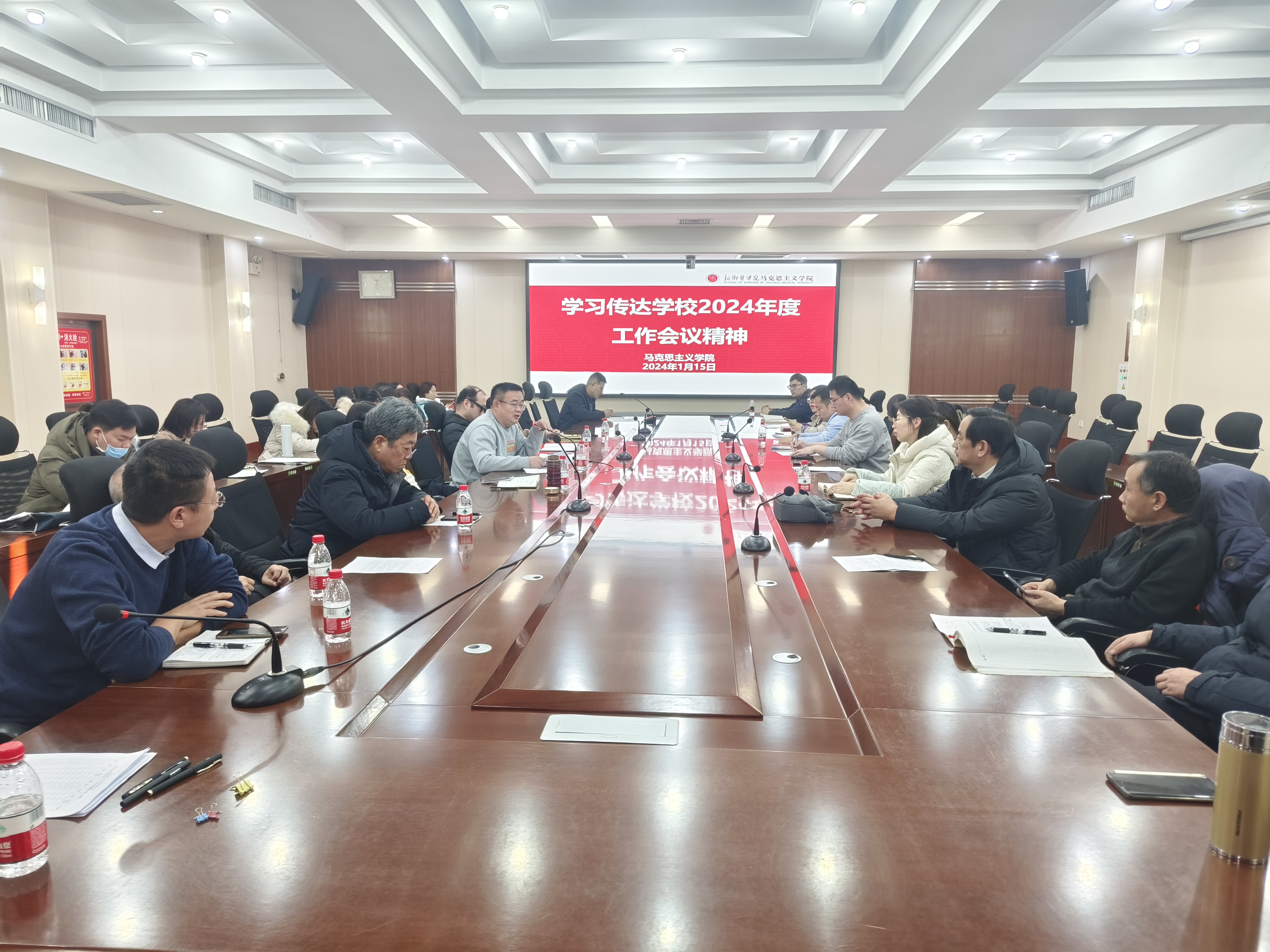 1月15日上午,我院在勤政楼六楼会议室召开全体教职工会议,会议深入学习了学校2024年度工作会议精神。总支书记仝士栋、副书记史伟、副院长朱培丽、副院长刘红及全体教职工参加会议,会议由仝士栋主持。