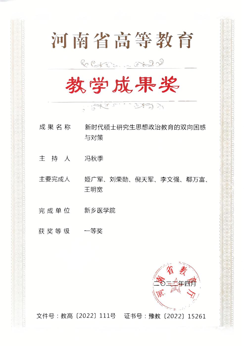 我院马克思主义理论一级学科是河南省重点学科,同时设有新兴交叉学科——中华文化共同体研究。近年来,学院教师主持国家社科基金项目5项,成果入选国家哲学社会科学成果文库(国家最高学术荣誉),荣获教育部高等学校科学研究优秀成果奖1项,荣获河南省优秀教学成果一等奖1项,建成国家一流本科课程1门,河南省一流课程、示范课程实现了全覆盖。获批河南省研究生教育工作优秀团队,指导河南省示范性青年马克思主义社团,研究生荣获全国大学生讲思政课教学比赛一等奖。