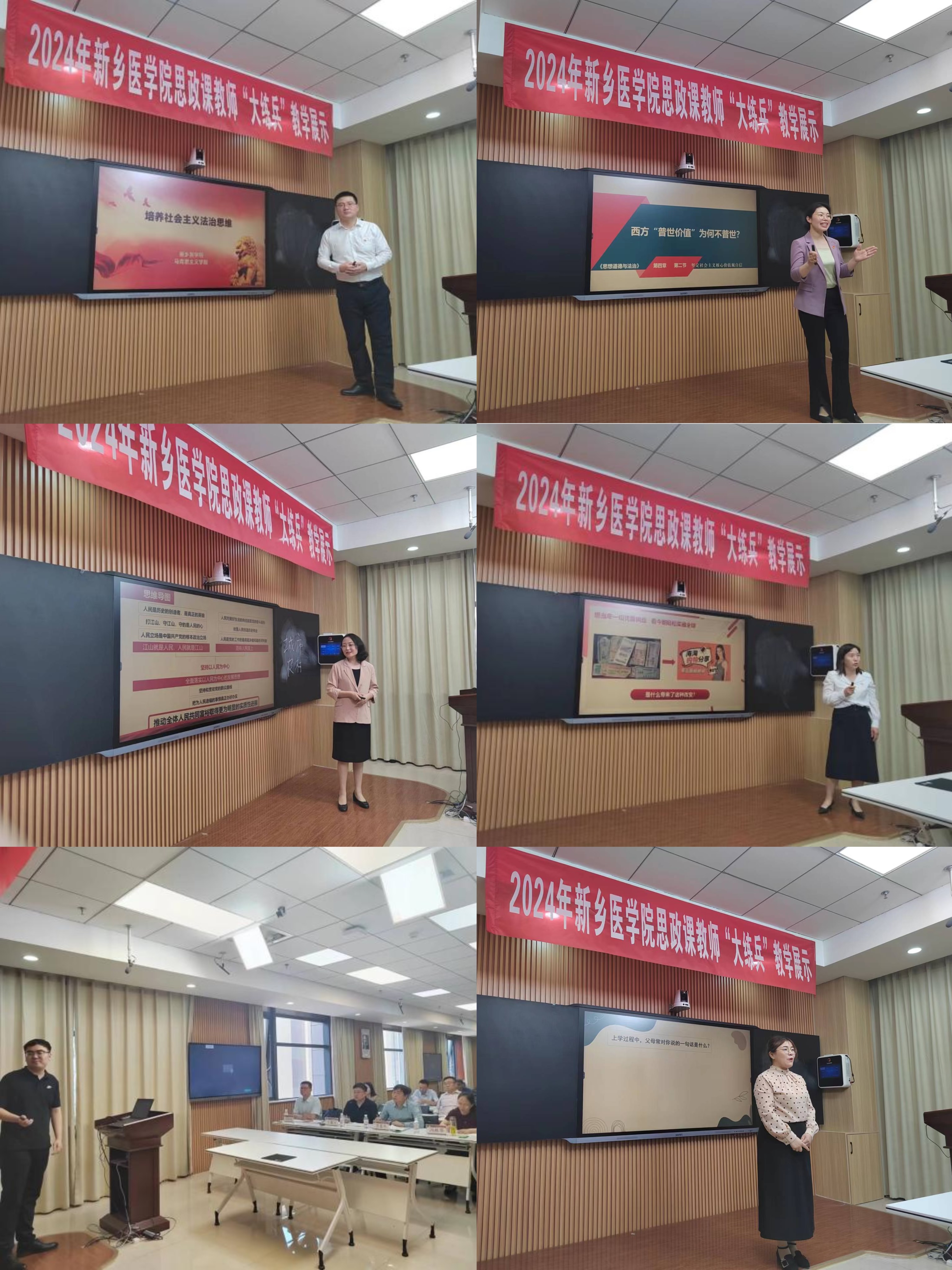 本次“大练兵”对标教育部高校思政课教学展示活动的标准要求,15位教师从个人提交的三个教学专题中随机抽取其一进行教学展示。他们以扎实的功底、典型的案例、精美的课件、生动的语言、灵活的教法呈现了多样的教学内容,充分展现了个人的教学风采和教学水平,给评委和观摩师生留下了深刻印象。