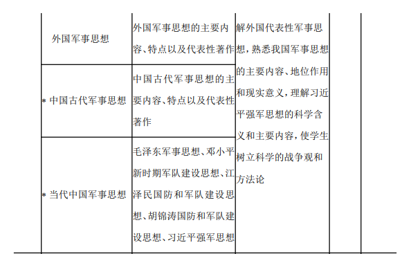 军事课是普通高等学校学生的必修课程。军事课要以习近平强军思想和习近平总书记关于教育的重要论述为遵循,全面贯彻党的教育方针、新时代军事战略方针和总体国家安全观,围绕立德树人根本任务和强军目标根本要求,着眼培育和践行社会主义核心价值观,以提升学生国防意识和军事素养为重点,为实施军民融合发展战略和建设国防后备力量服务。