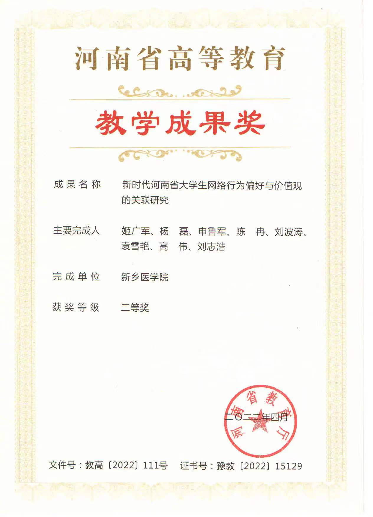 教育成果奖 新时代河南省大学生网络行为偏好与价值观的关联研究