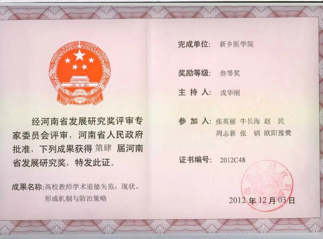 河南省人民政府 三等奖 高校教师学术道德失范:现状、形成机制与防治策略
