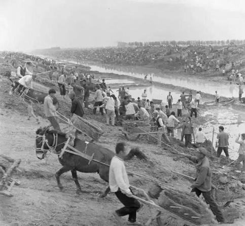 建国以前及建国初期,由于长期的战乱,黄河、淮河、海河多次决口,泛滥成灾,给国家和人民的生命财产造成了巨大损失,治理水患、兴修水利在这时便显得非常重要。上个世纪50年代初,毛泽东先后发出“一定要把淮河修好”“要把黄河的事情办好”等号召,全国掀起了兴修水利的高潮。