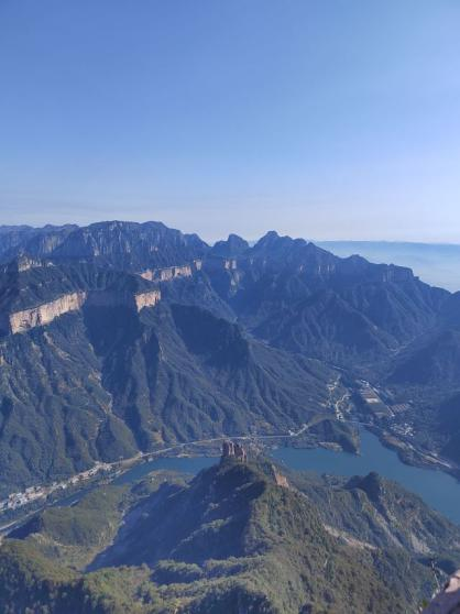 太行山纵跨北京、河北、山西、河南四省市,由于地壳的隆起和凹陷造成太行山山前断层的巨大错断,加上日积月累风水侵蚀,最终成就了山高谷深、大起大落的壮丽景象。