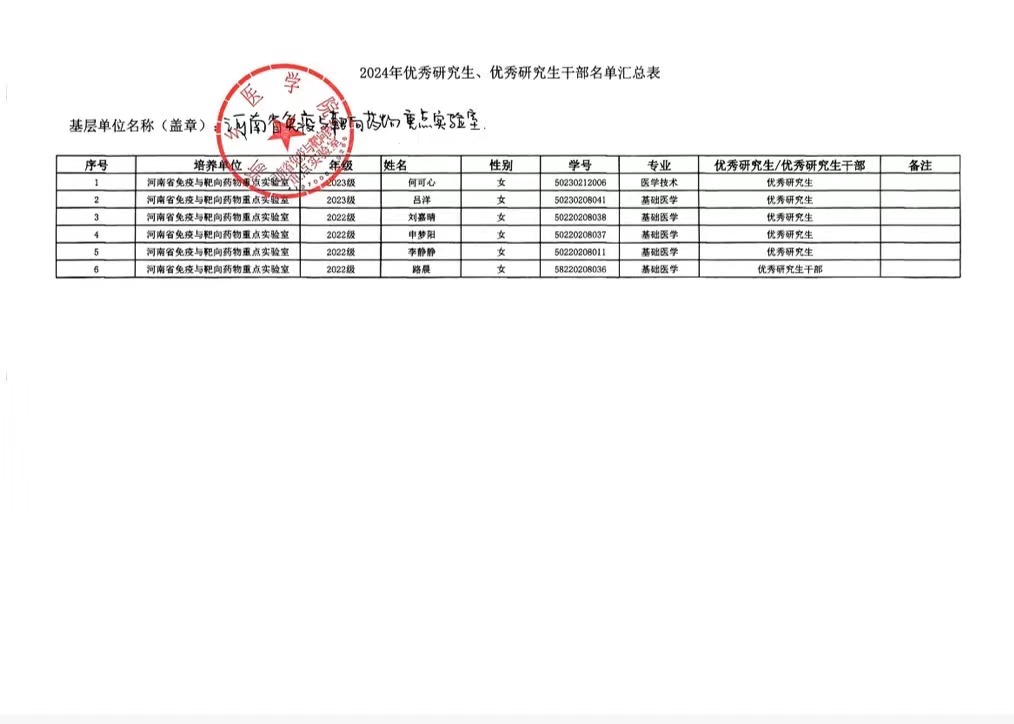 上一条:河南省免疫与靶向药物重点实验室2025年研究生招生调剂及复试细则 下一条:河南省免疫与靶向药物重点实验室2023-2024年度精神文明建设先进个人评选结果公示