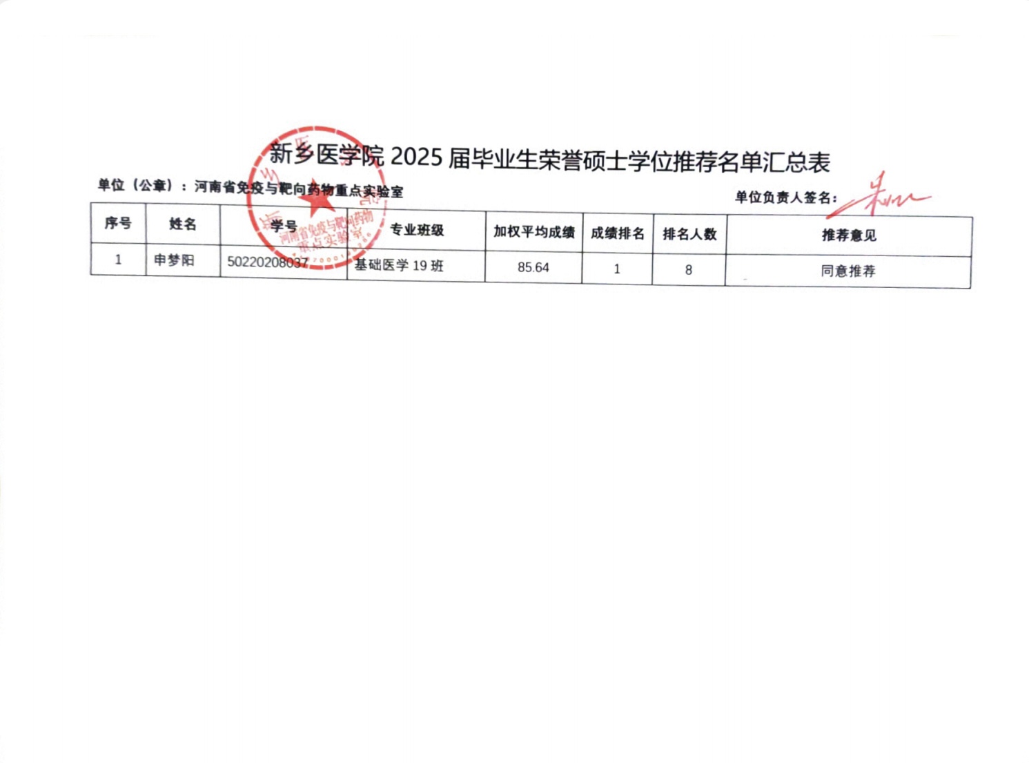 上一条:河南省免疫与靶向药物重点实验室“2025年河南省普通高等学校三好学生、优秀学生干部、先进班集体”推荐名单 下一条:河南省免疫与靶向药物重点实验室2024-2025学年“体育达人”“美育之星”“劳动模范”申报名单