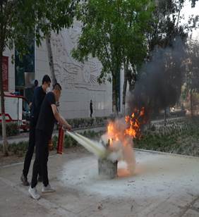 会后,为了加强职工的实操能力,在校消防队的协助下,进行了中心专场灭火演练,通过让每位职工进行实际灭火操作来提高防火实战技能。