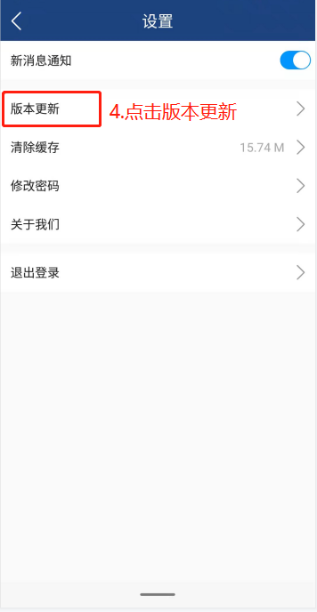 打开并登陆i新医---进入个人中心---点击设置---点击版本更新---弹出页面选择“立即下载”----安装后重新打开i新医登录即可,如下图所示。