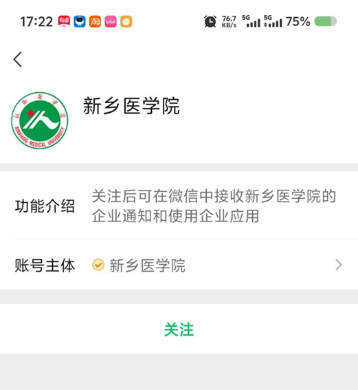 扫描后如下图所示,点击关注: