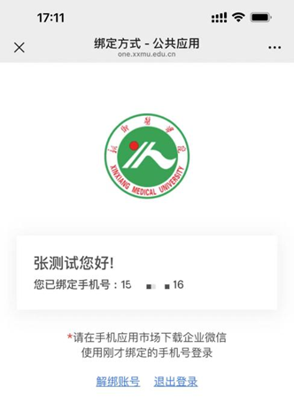 说明:要求输入手机号必须是本人手机微信注册时使用的手机号(方便您登录平台时可用微信扫码登录);成功绑定后界面: