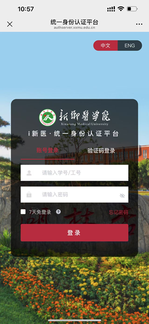 输入教职工(工号)/在校生(学号),密码(默认密码Xxmu#身份证后8位),点击登录。