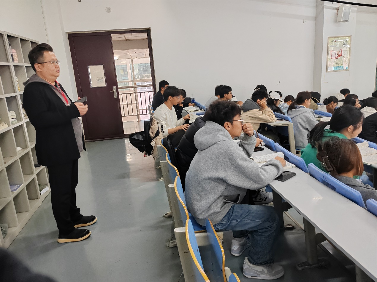 11月15日,副书记陈宏、辅导员潘楠深入教学场所督导学风工作,了解课堂上学生们的学习情况,并对课堂中学生们出现的一些不良行为进行指正。