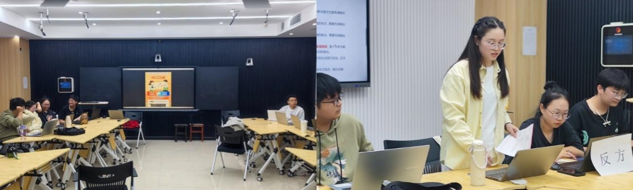 高效文献检索要求同学们借助AI,巧妙地提炼出精准的检索词;高效文献阅读环节,同学们通过小组讨论和相互点评深挖每篇文献的核心;高效文献分析以分组辩论赛的形式呈现,同学们在AI帮助下从多角度挖掘同一文献的利弊,以唇齿舌战论“输赢”;科研创新实战训练中,结合学院已完成的省部级、国家级课题进行创新实践,同学们利用AI快速体验从选题到设计,再到汇报的完整科研项目流程;科研汇报实战训练中模拟竞赛模式,让同学们熟练运用AI,经历从文献阅读、分析到创新课题的提出,最终呈现精彩的汇报。