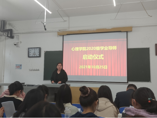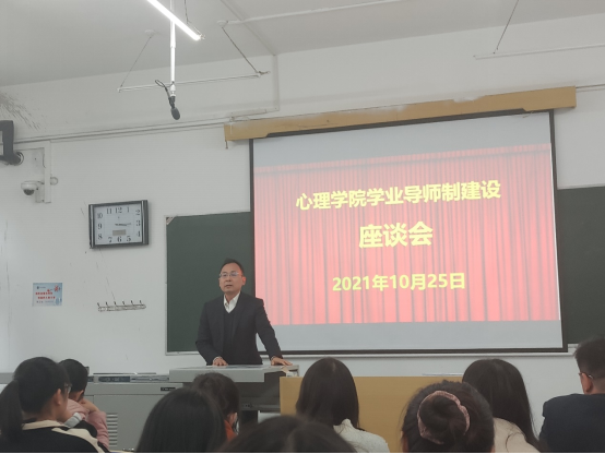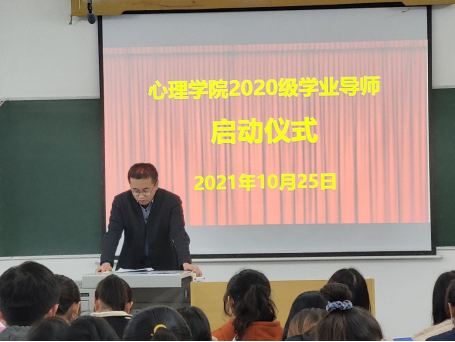 为贯彻落实立德树人根本任务,构建全员育人格局,提高人才培养质量,我院于10月25日在2103教室举行2020级学业导师工作启动仪式暨学业导师制建设座谈会。活动由心理学院副院长张东军主持,出席活动的有心理学院院长朱金富、管理与心理学院党委副书记马帅、学工办、教学办、各位学业导师和2020级的同学们。
