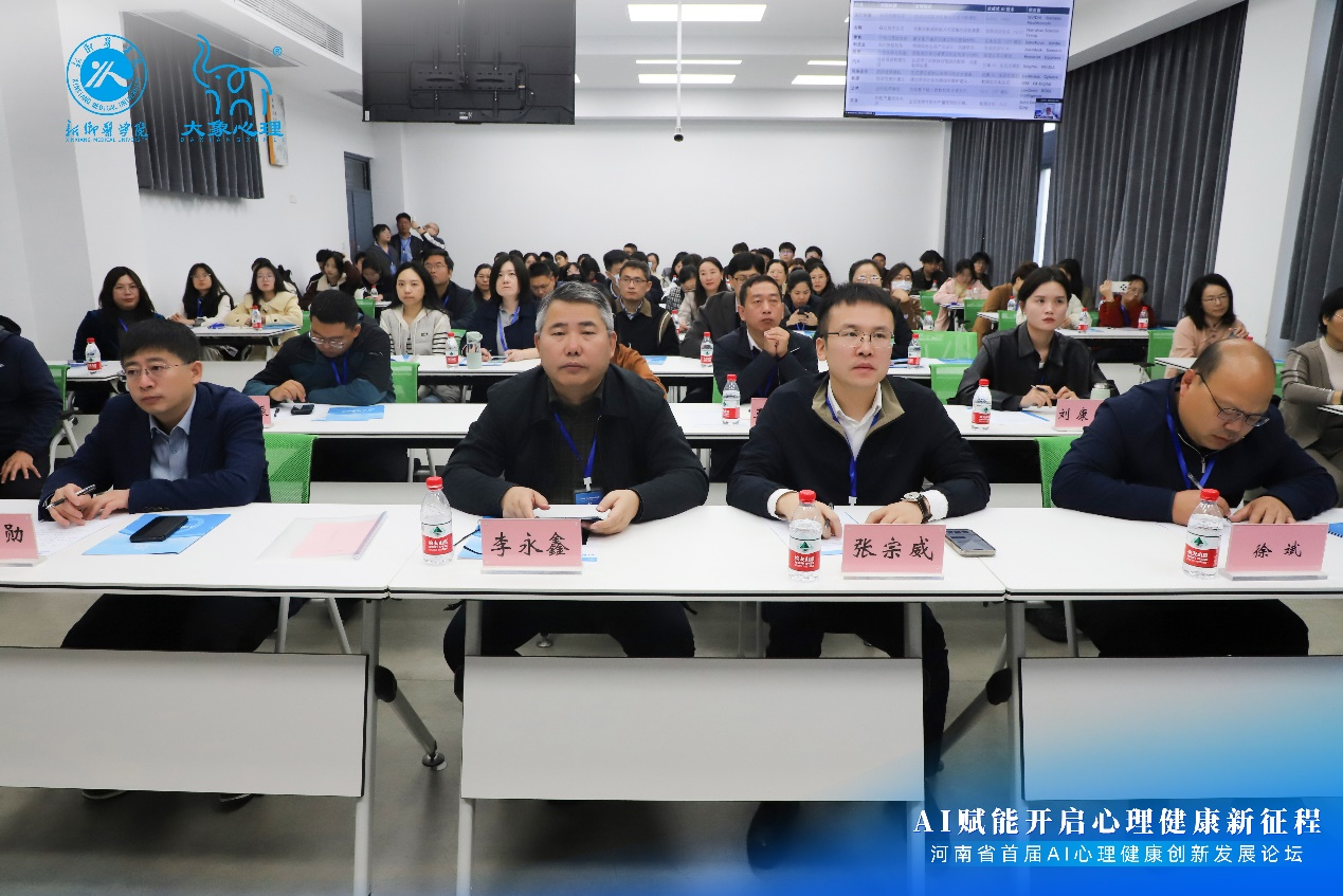 出席论坛的嘉宾包括全国学生心理健康工作咨询委员会委员、河南省心理学会理事长、河南大学心理学院院长李永鑫教授,华亿在线手机版(大中国区)人才工作处处长刘荣勋,华亿在线手机版(大中国区)心理学院院长张红星,华亿在线手机版(大中国区)心理学院副院长张东军,清华大学本科及硕士、美国宾夕法尼亚州立大学博士汤开智,全国团十九大代表、河南省心理学会副秘书长、大象心理CEO张宗威等。此外,来自全国各省各高校心理学院、学工部、心理健康中心的专家学者近70人齐聚一堂,共同探讨AI与心理健康深度融合的路径,分享前沿研究成果和实践经验,探讨人才培养的新模式,为AI赋能心理健康领域注入新的活力。