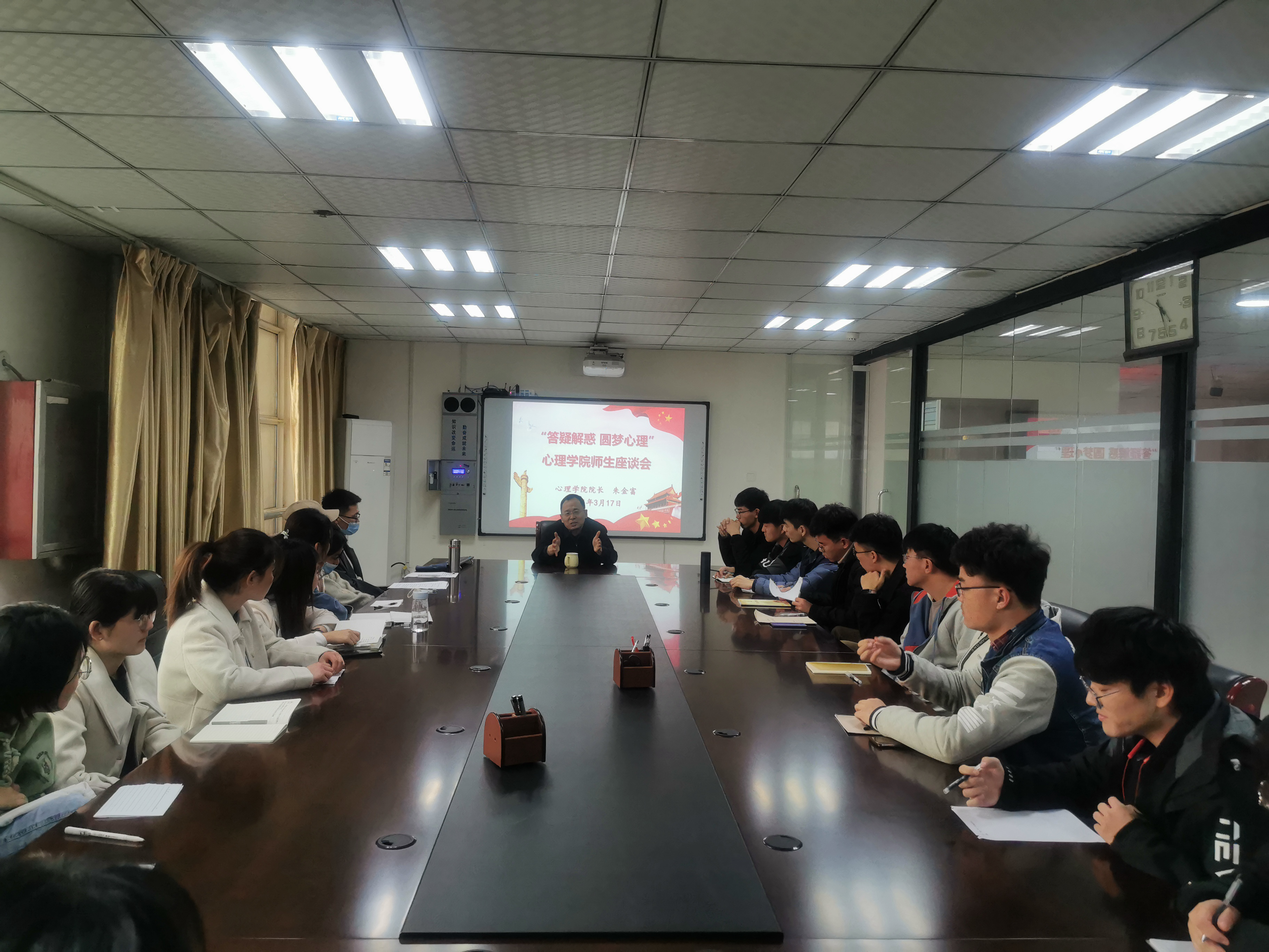 课后,朱院长针对同学们在学习、生活、工作中遇到的问题进行了“答疑解惑,圆梦心理”座谈,对于学生提出的“现在大学生考研是否已经成为必需”、“为什么师范院校会有临床心理学专业”、“精神医学与心理学有什么关系”等问题,朱院长结合自身经历耐心的为同学们解答,并且告诫同学们未来有很多选择,但只要同学们坚定理想信念,不忘初心,努力奋斗,总会找到适合自己的道路。