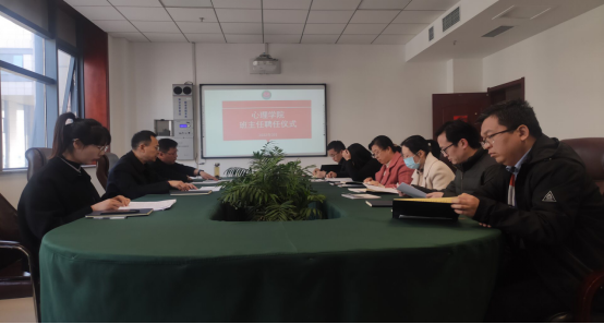 为切实加强班主任队伍的建设,建立健全工作制度,逐步形成一支专职辅导员和班主任相结合的队伍,心理学院于3月4日上午在学院会议室举行班主任聘任仪式。心理学院院长朱金富、管理与心理学院党委副书记马帅、心理学院副院长张东军、学生工作办公室负责人及6位受聘班主任参加本次会议。仪式由党委副书记马帅主持。