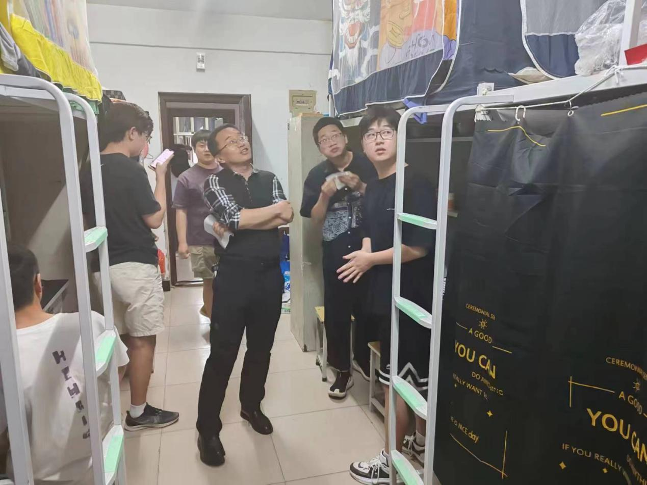 为加强宿舍6S建设,营造安全卫生的宿舍环境,我院于近日开展宿舍走访活动。心理学院书记刘荣勋、副书记陈宏、副院长张东军及2023级班主任张捷、谢志杰老师分别对学生宿舍进行走访检查,和同学们面对面交流。