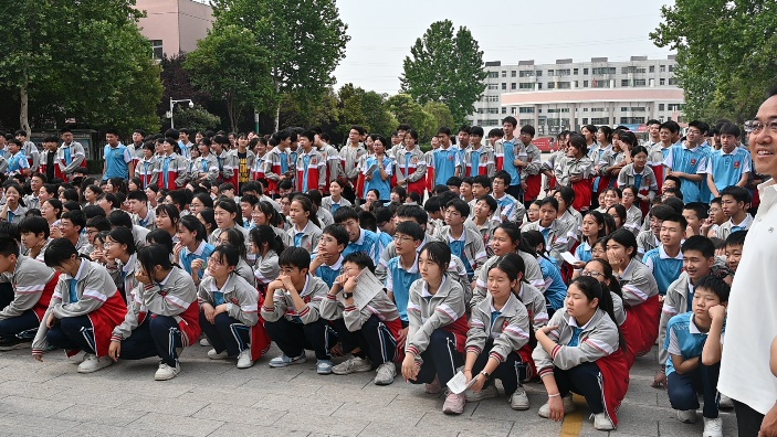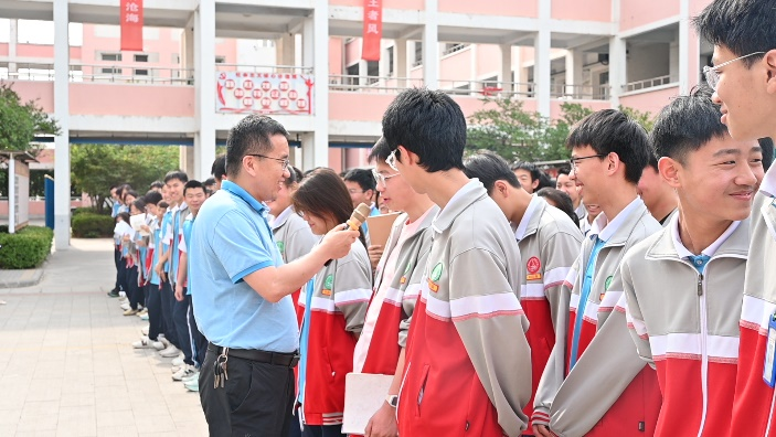 张东军院长作为河南省科普专家为中考生们带来了一场关于正确认识与缓解考试压力的专题讲座。他凭借专业知识与丰富经验,为同学们提供科学的心理指导,帮助大家掌握应对考试压力的有效方法。申鲁军副教授鼓励大家勇敢面对中考,呵护心理健康,带领大家做缓解压力放松操。