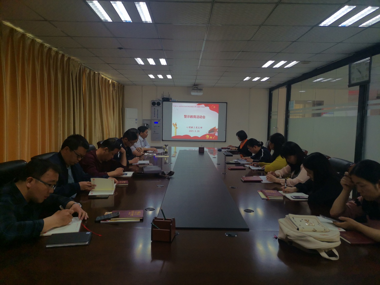 5月20日下午,心理教工党支部在心理学院会议室开展了警示教育活动,支部全体党员参加活动,活动由支部书记申鲁军主持。首先,申鲁军通报了近期河南省纪委通报三起在干部选拔任用期间诬告陷害他人典型案例,然后大家集中观看警示教育片《边界》,以案为鉴,交流心得体会。通过反面案例为鉴,警示支部党员从案例中吸取教训,进一步增强了党员的政治意识、法规意识、廉洁意识。支部全体党员一致表示,要加强政治素养,坚定政治立场,增强党性锻炼,提升自身修养,把握好自我,不忘初心、牢记使命,牢牢守住“底线”,自觉做到防微杜渐、警钟长鸣。