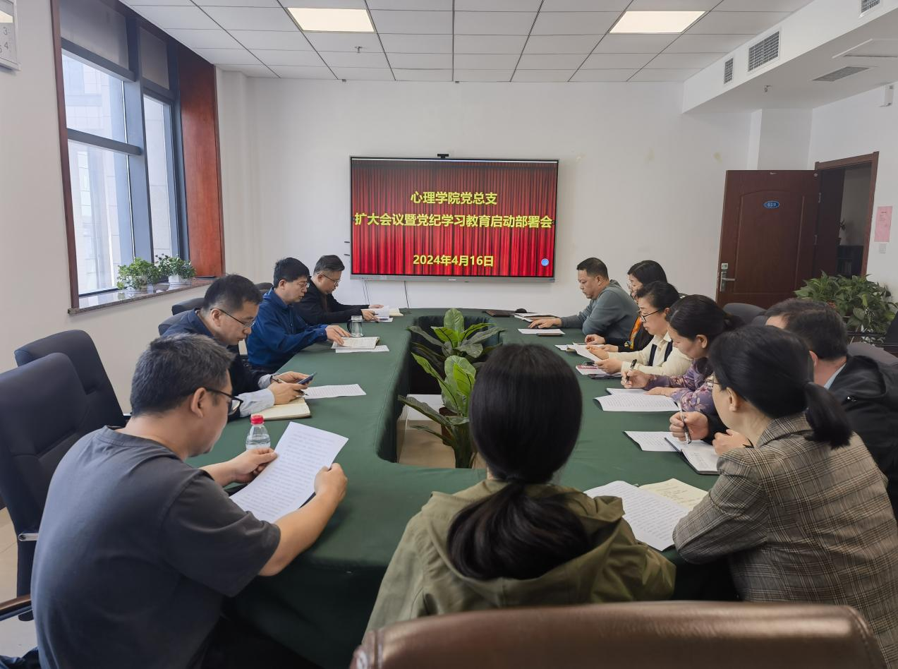 4月16日上午,心理学院召开党总支扩大会议暨党纪学习教育启动部署会,学院科级以上干部参加,党总支书记刘荣勋主持会议并讲话。