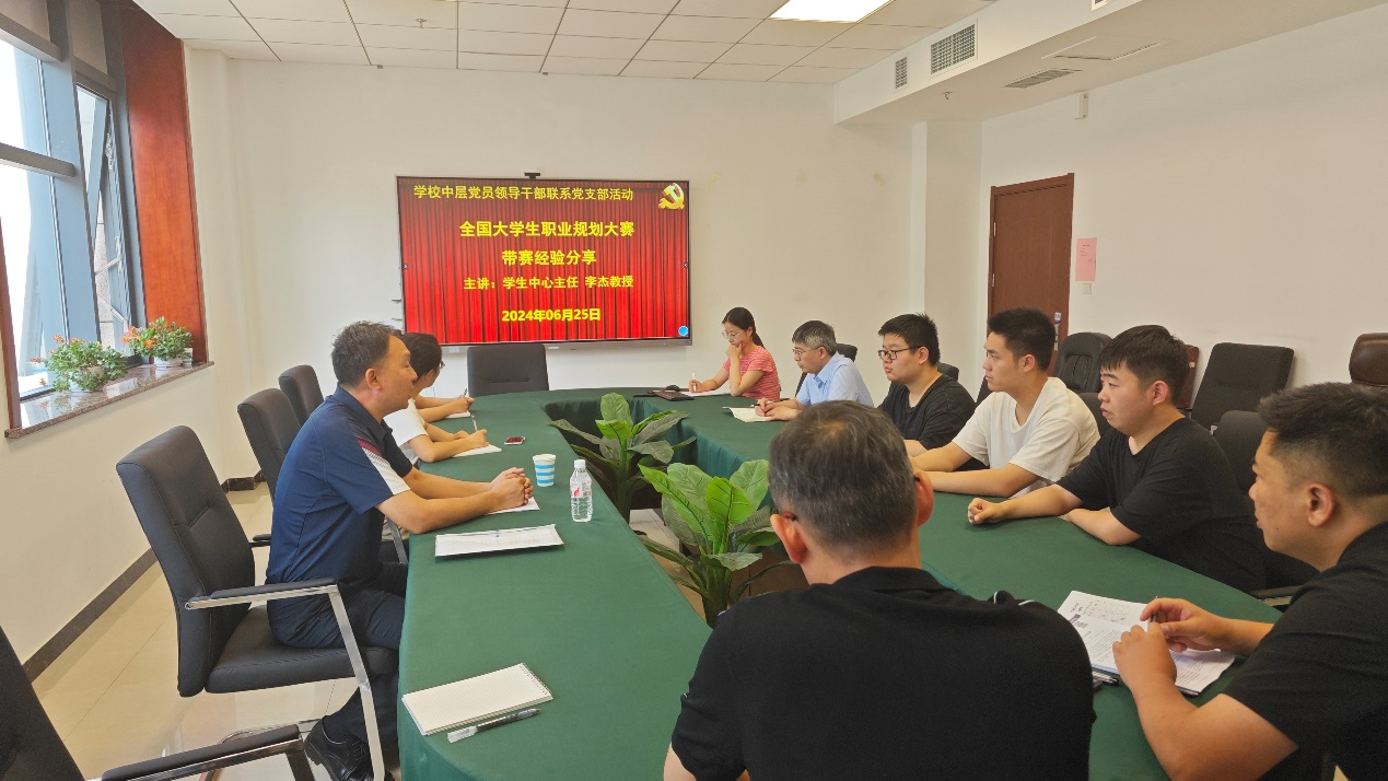 6月25日下午,学生中心主任李杰结合全国大学生职业规划大赛总决赛和河南高教就业赛道的集训组长带赛两个月的心得,以“全国大学生职业规划大赛带赛经验分享”为题为心理学院教工第一党支部的党员讲授党课。他从初心、目标确定等5个方面,指导党员教师不忘初心,砥砺前行,实现自己的人生价值;鼓励参会的学生党员结合社会需求、确定目标,激发内在动力,不断提高自身专业能力。