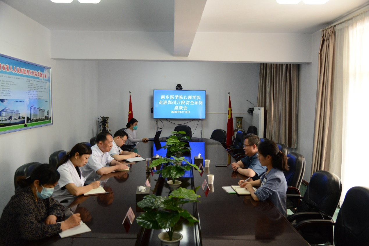 5月16日,心理学院党总支副书记陈宏带领学院相关人员到郑州市第八人民医院开展访企拓岗走访调研。郑州八院副书记舒德宝及人事科、医务科相关负责人出席座谈会。