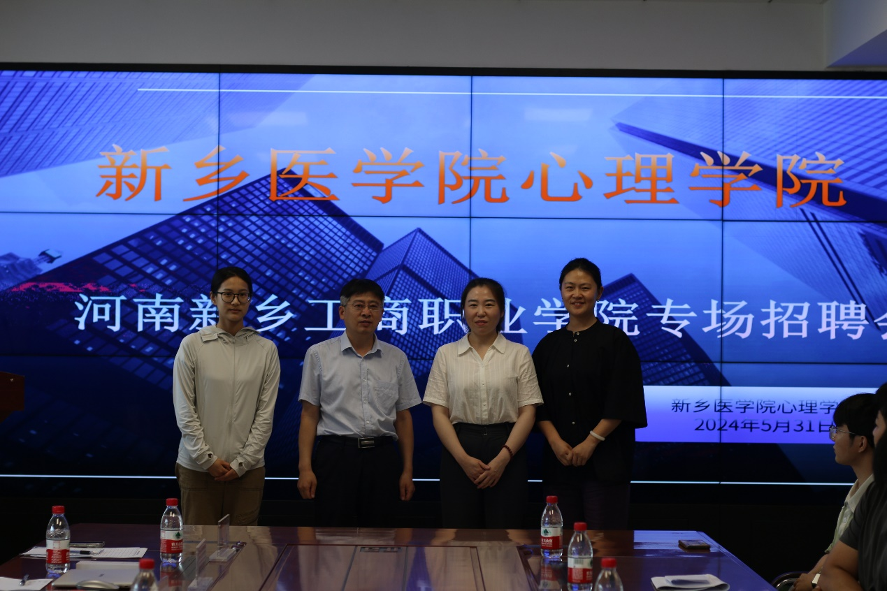 河南新乡工商职业学院专场招聘会于5月31日在北校区图书信息楼508会议室举办,本次参会人员有河南新乡职业学院相关负责人,华亿在线手机版(大中国区)心理学院党总支书记刘荣勋、学工办主任潘楠,以及部分学生代表。